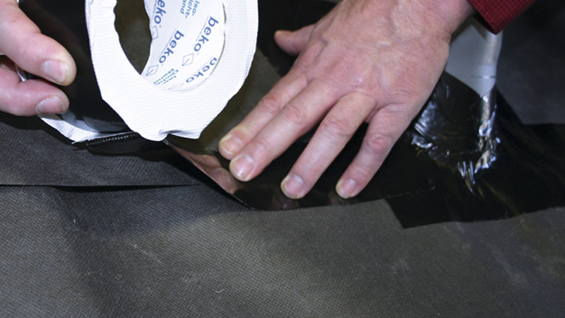 Incollaggio duraturo di freni a vapore e teli comunemente reperibili in commercio, collegamento impermeabile di teli per sottotetti, sottostrati e membrane per facciate, per pendenze a partire da 10°.